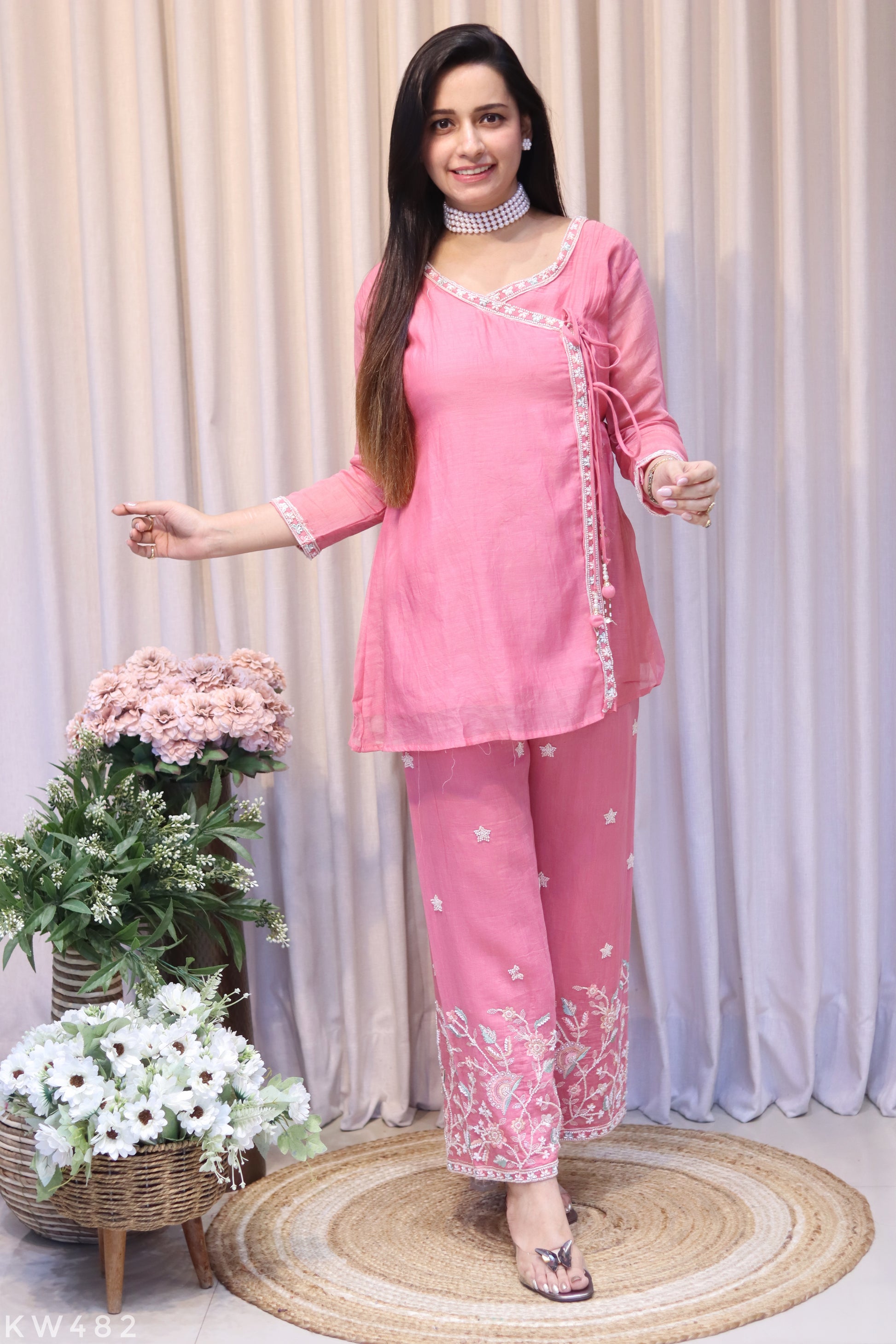 Exquisite pure mul chanderi anghrakha coordset, designed for the discerning woman who values timeless elegance and refined comfort in her ethnic collection.