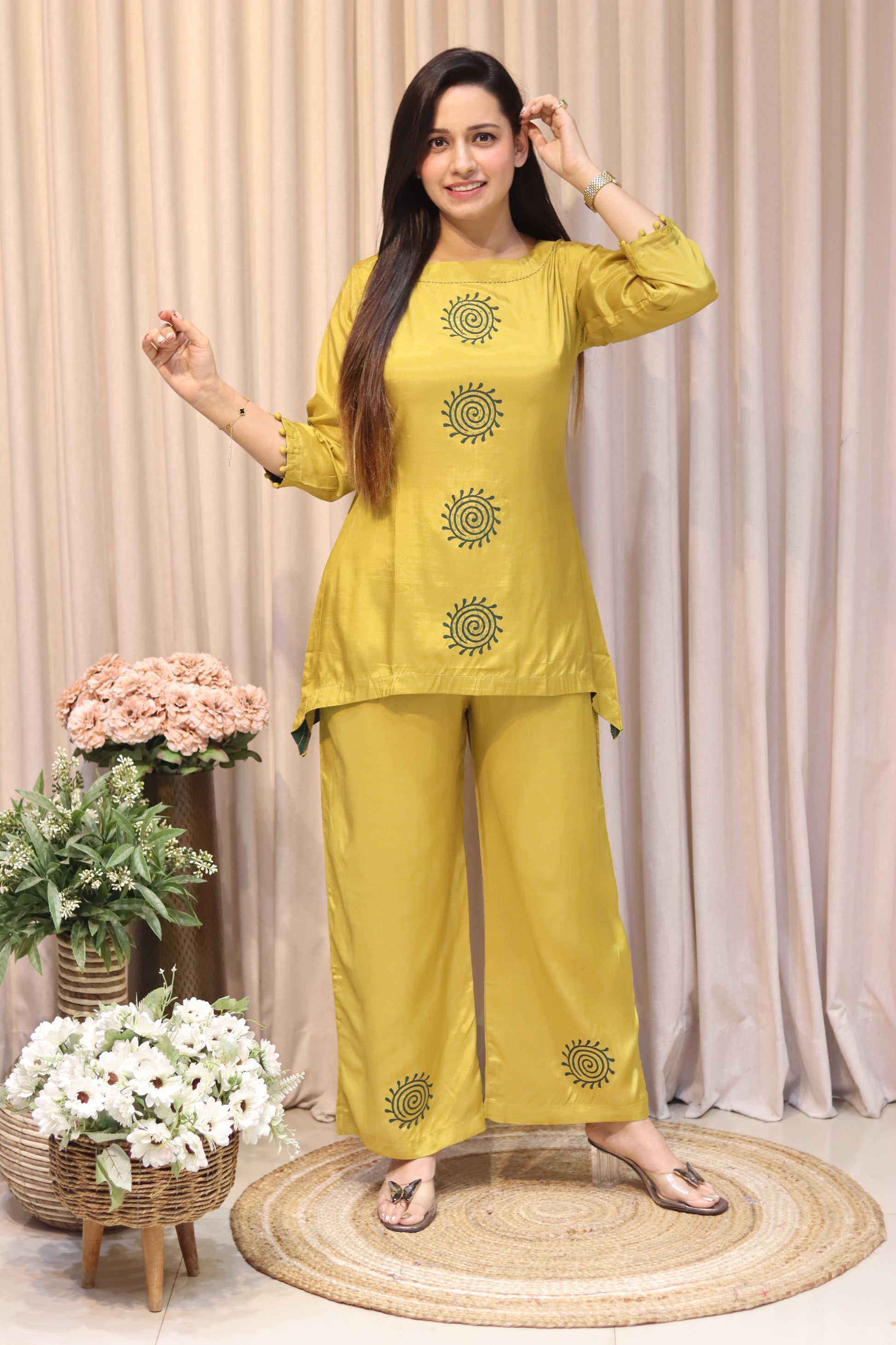 Elevate your everyday elegance with this exquisite pure muslin coordset, where traditional hand work meets contemporary design. Each piece features premium printed patterns that celebrate artisanal craftsmanship, offering a perfect blend of comfort and sophistication. Ideal for those who appreciate quality fabrics and thoughtful details, this coordset brings a touch of refined grace to your wardrobe. Perfect for casual gatherings or intimate occasions.