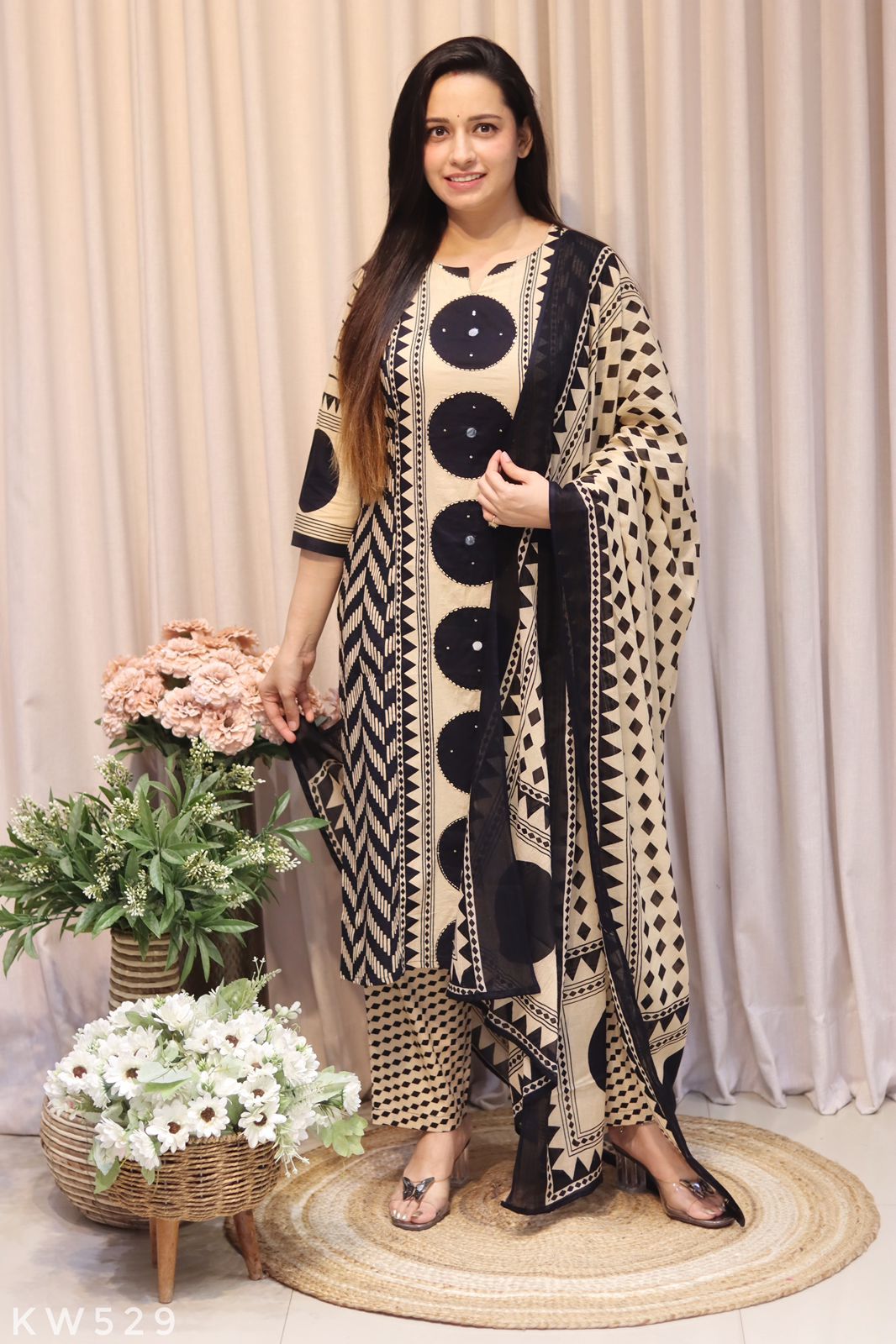 Crafted from premium pure cotton, this suit brings timeless elegance to your wardrobe. The breathable fabric ensures comfort throughout the day, while the refined tailoring offers a polished, sophisticated look. Perfect for both formal occasions and elevated everyday wear, this piece celebrates quality craftsmanship and understated style.