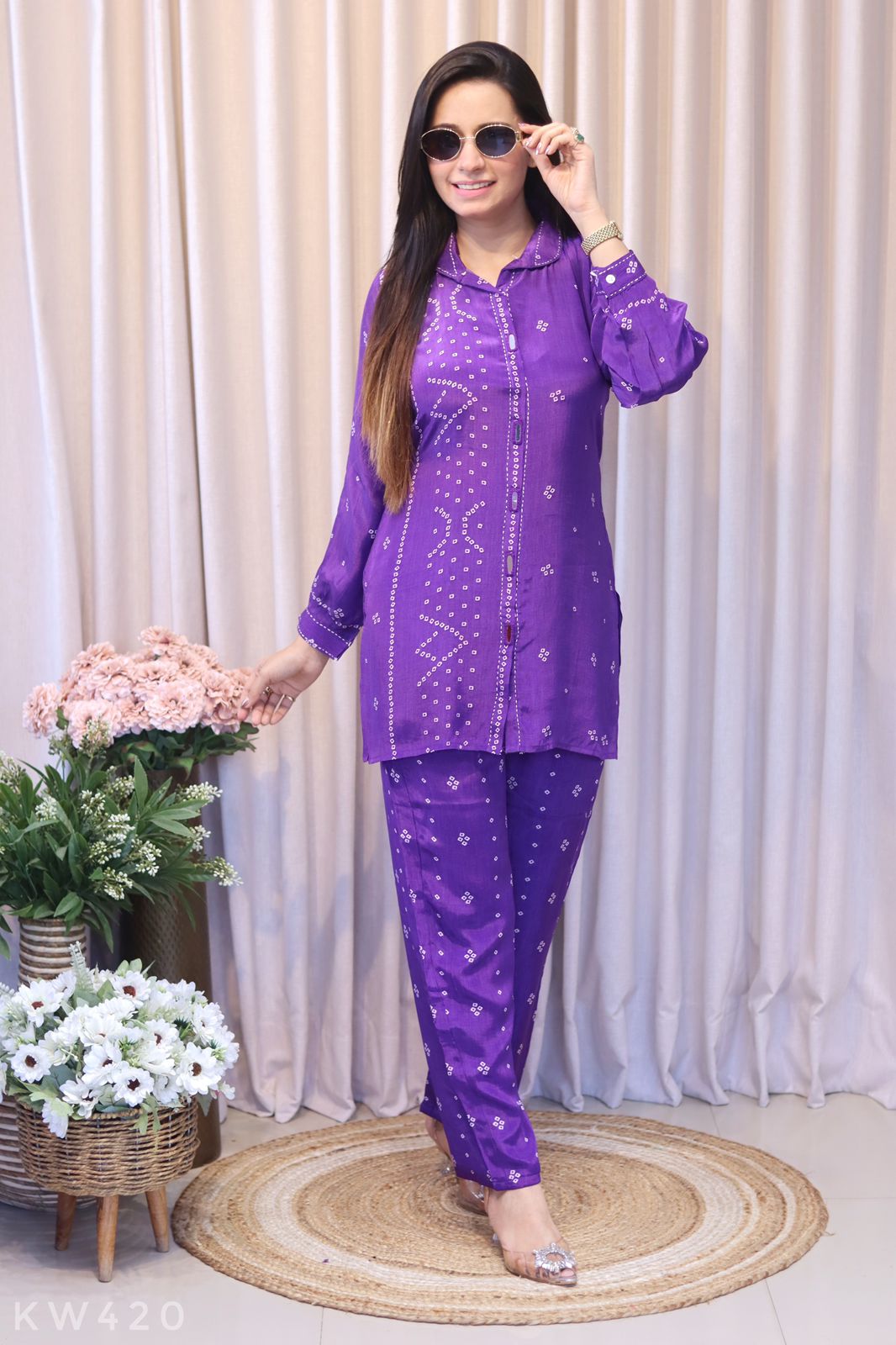 Premium Coordset in Pure Crape Silk featuring exquisite Bandhani design